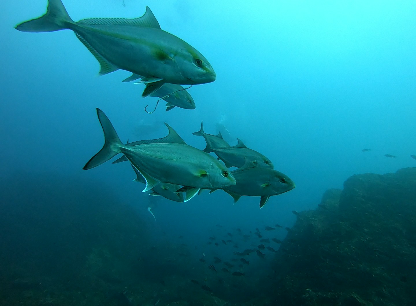 エントリー直後からヒレナガカンパチの群れ🎵