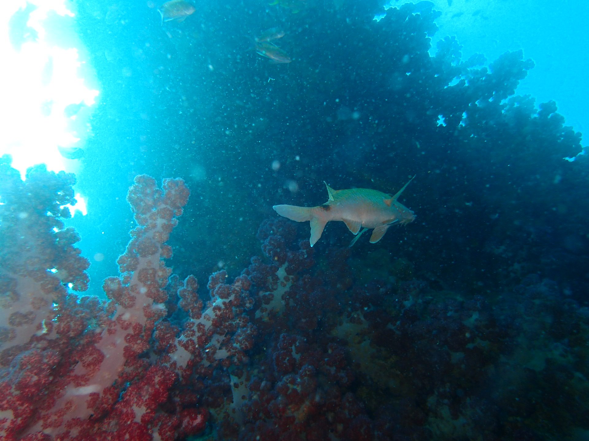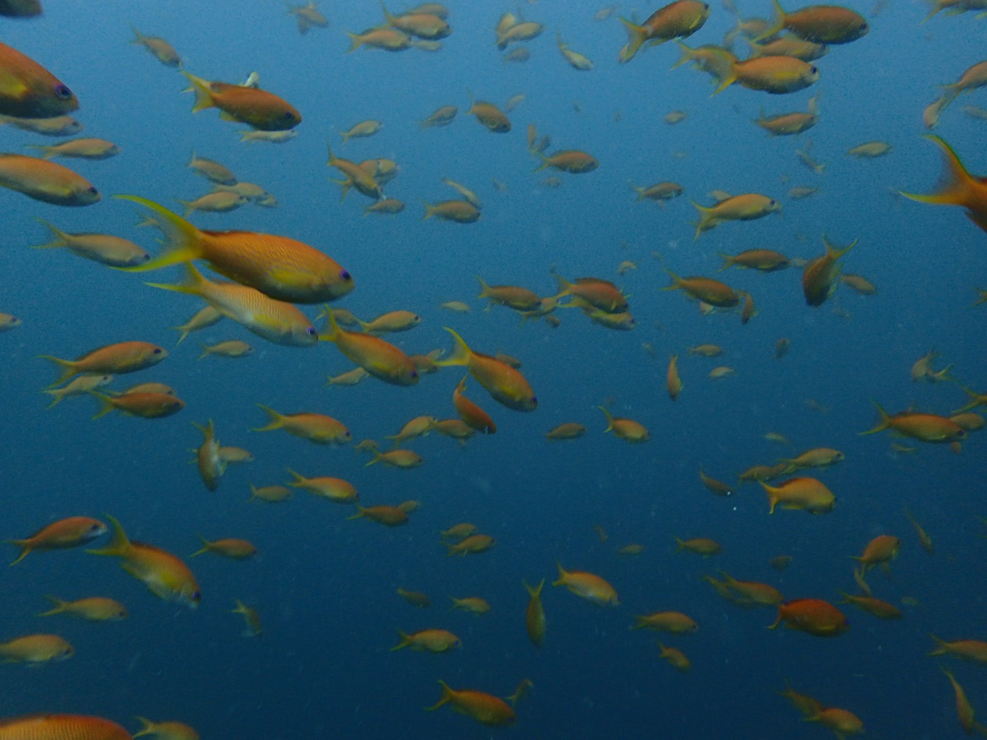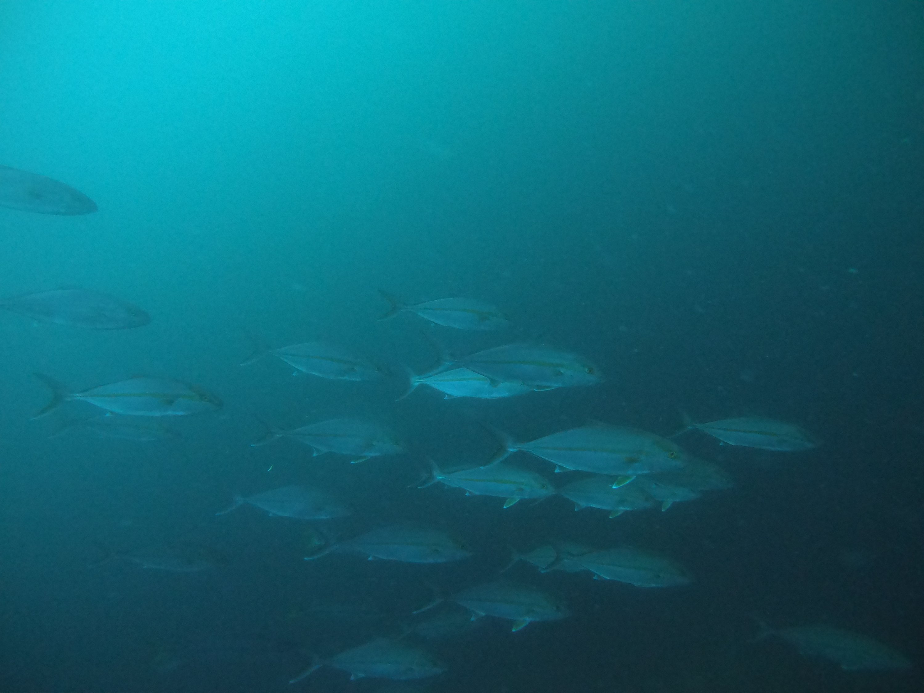 透視度はいまいちでしたが、湾内の白崎にはまだまだカマスの群れトルネードが見られたし、