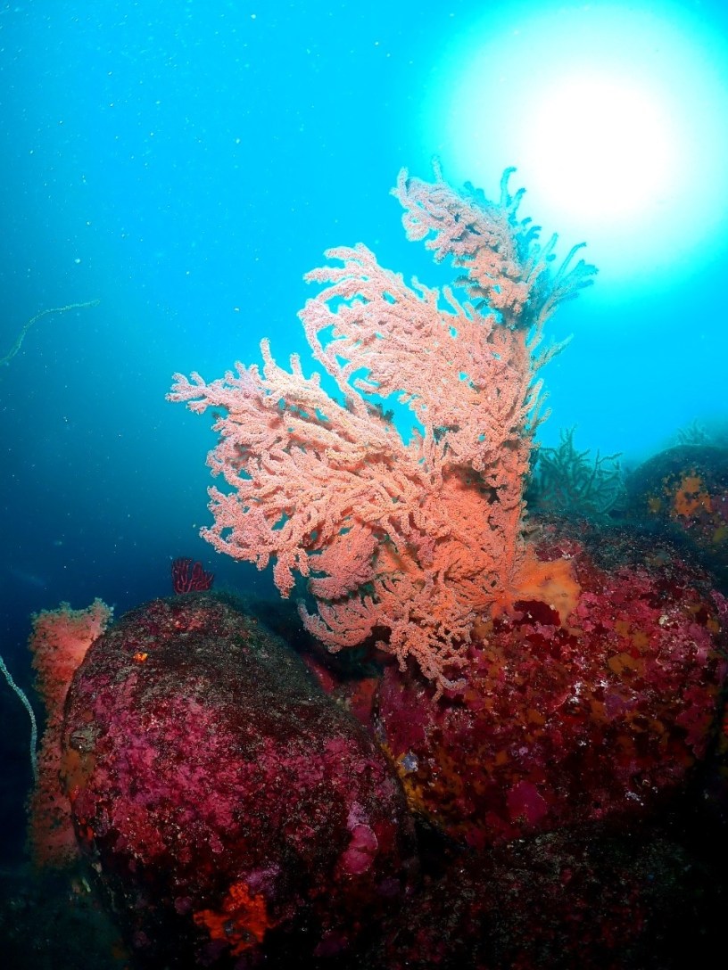 マクロが有名なので、来ているダイバーさんはカメラゴリゴリだったけど、私たちはワイド派なのでひたすら泳いでソフトコーラルの森へ!!