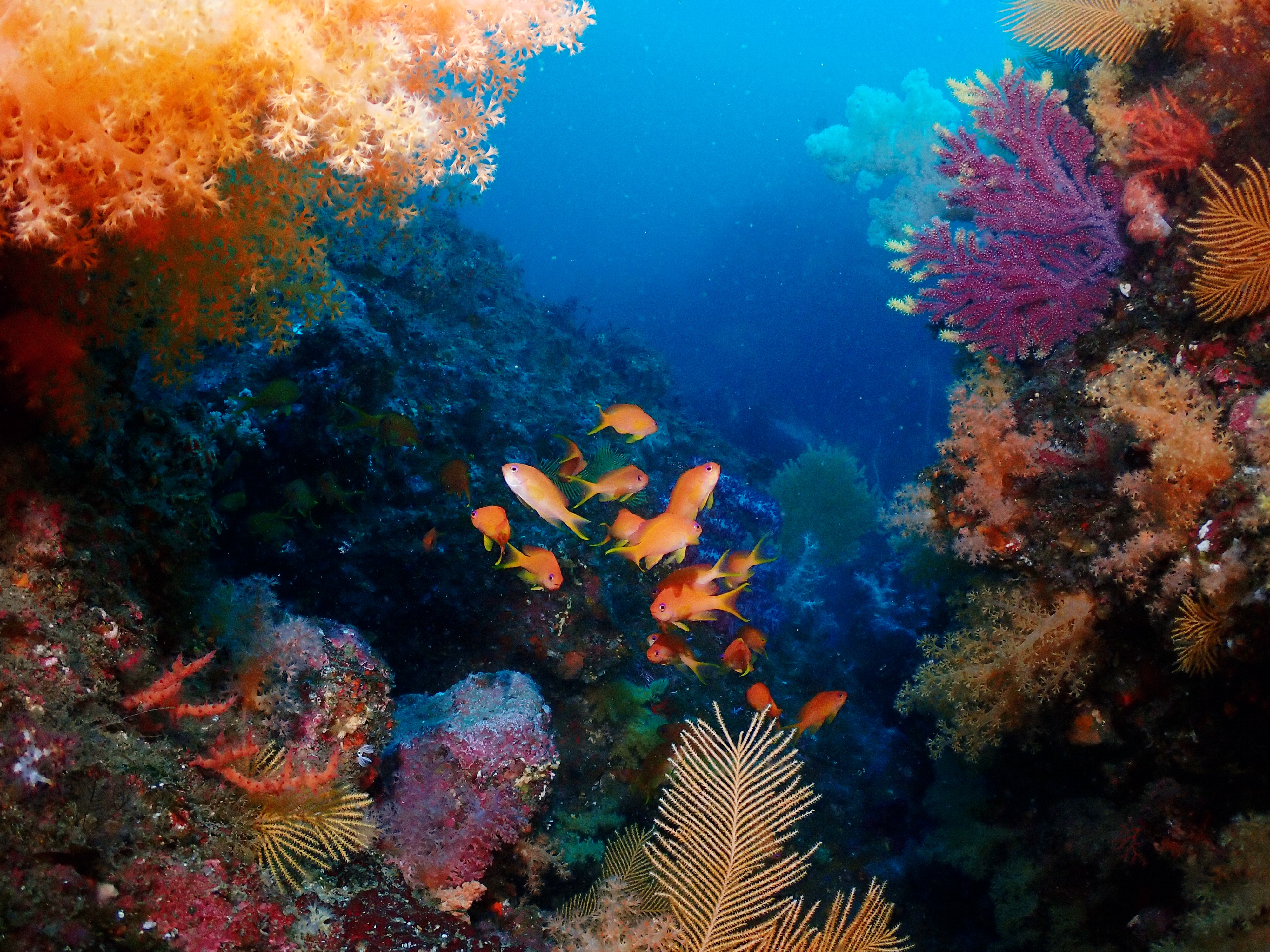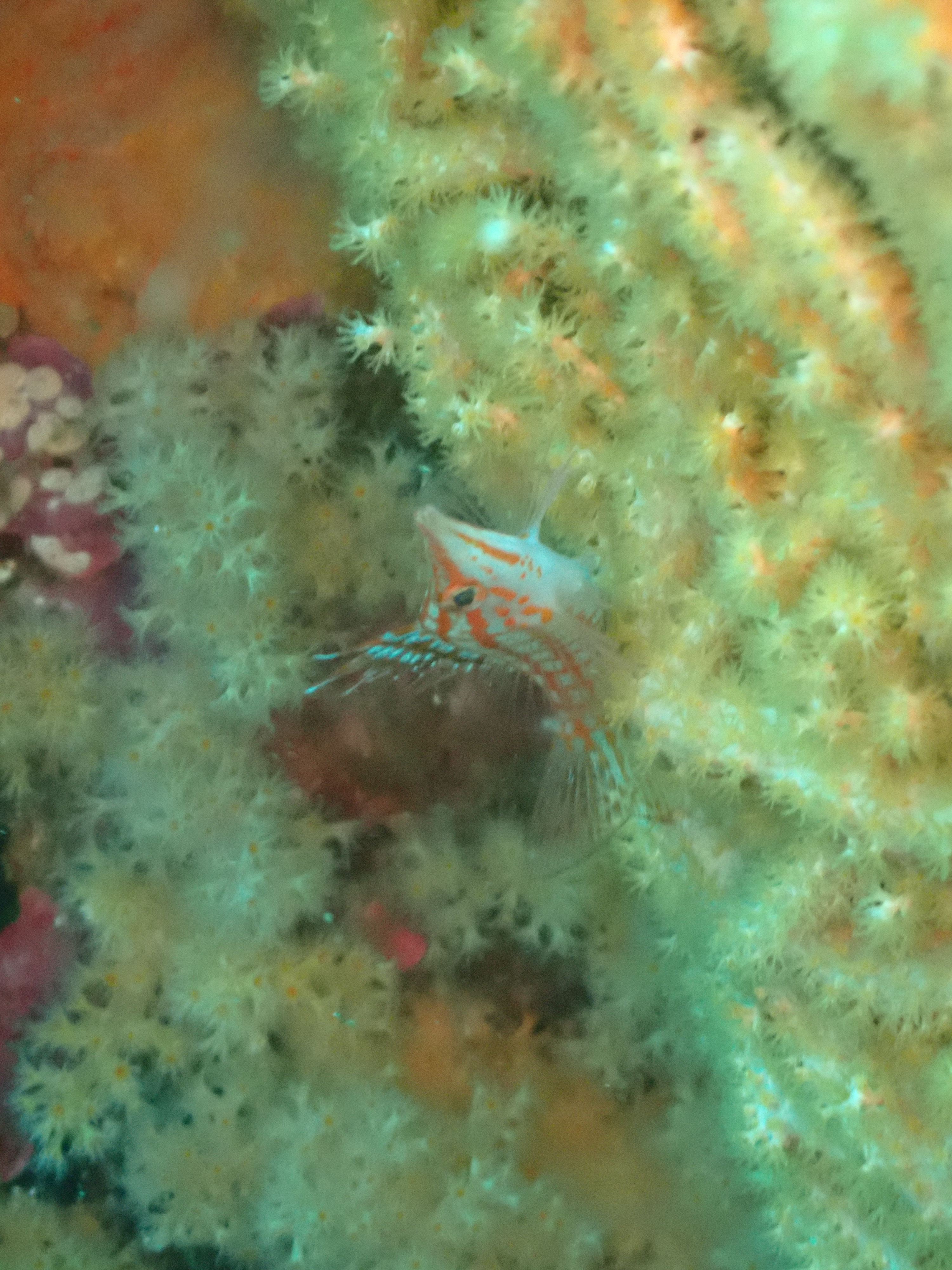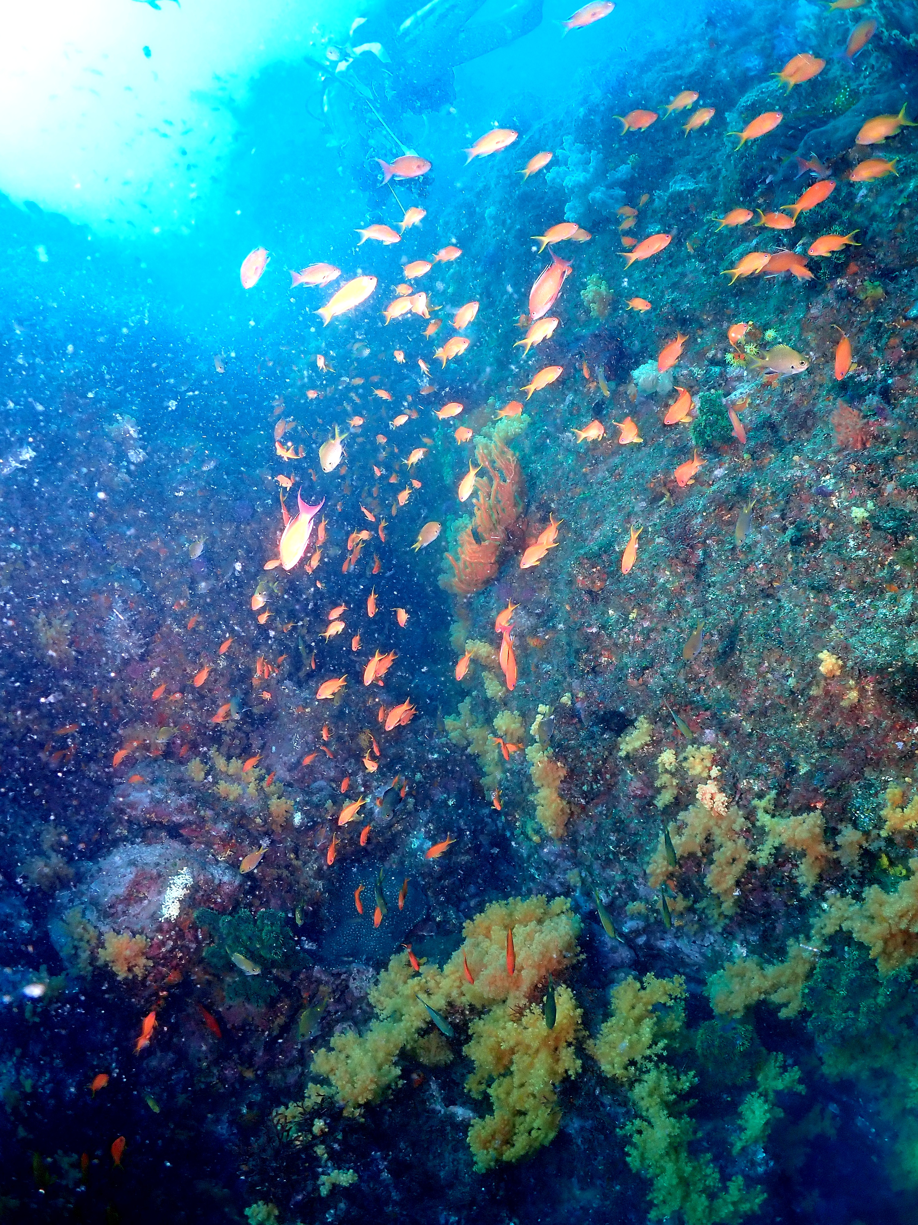 エントリーした瞬間は「おぉ!青い!」ってなりましたが、キンギョハナダイが群れているとこに行くと濁りが・・・