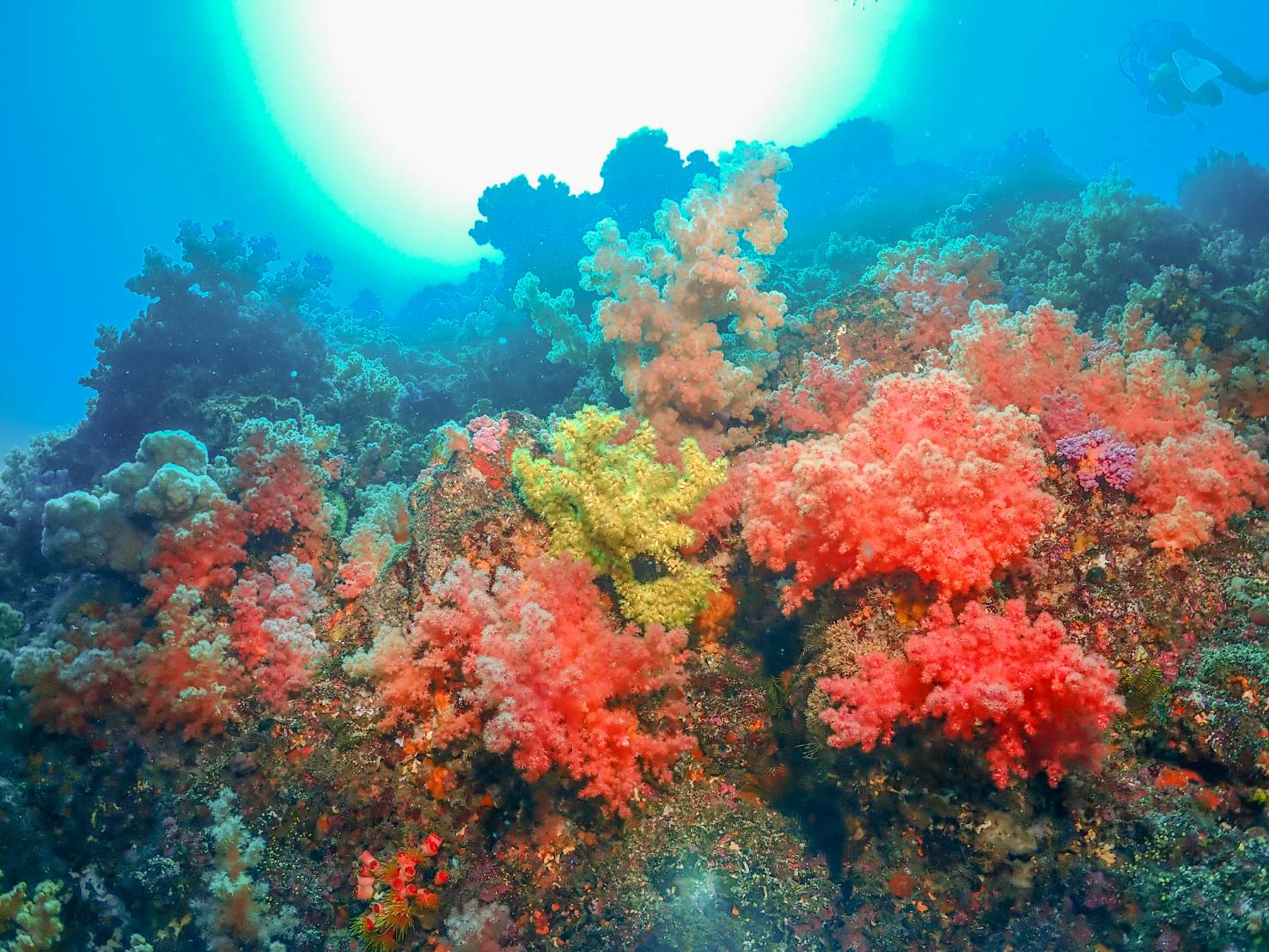 水深12mのところあたりに来ると、太陽の光も入ってきて、珊瑚の色がとってもキレイ。