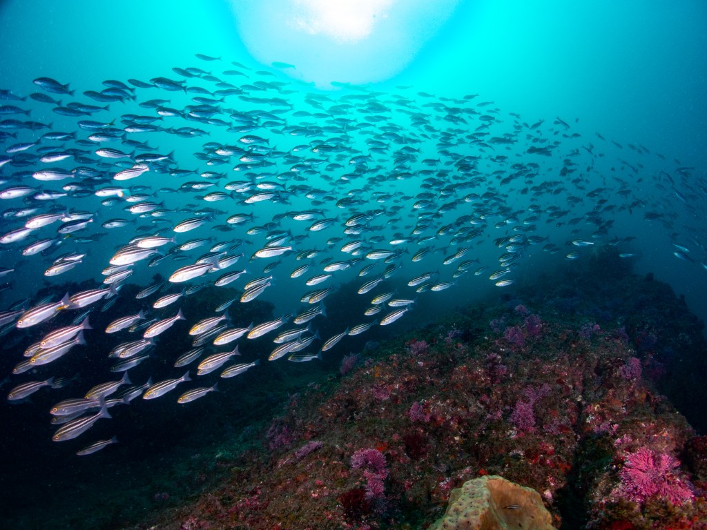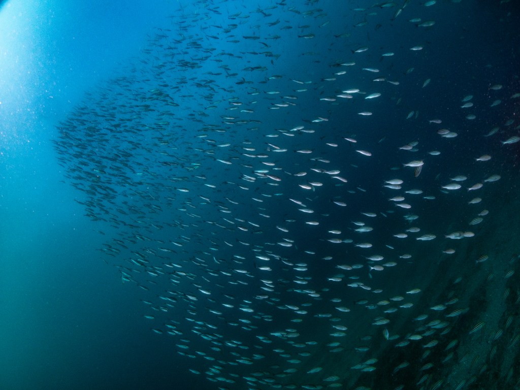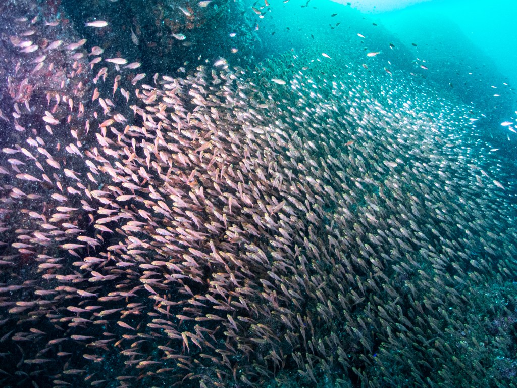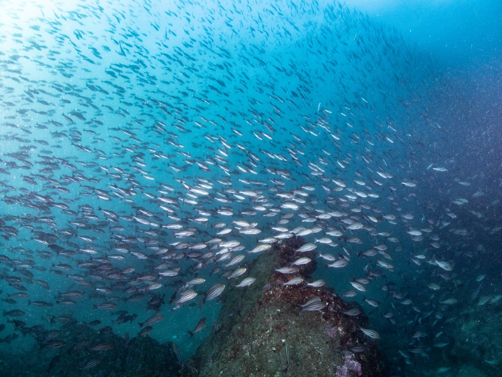 潜ってみると確かにお魚は群れ群れ〜〜〜〜〜!